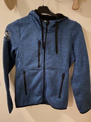 Fijn fleecevest met capuchon, verkrijgbaar in dames en herenmodel, gemêleerd blauw, maten S t/m XXL